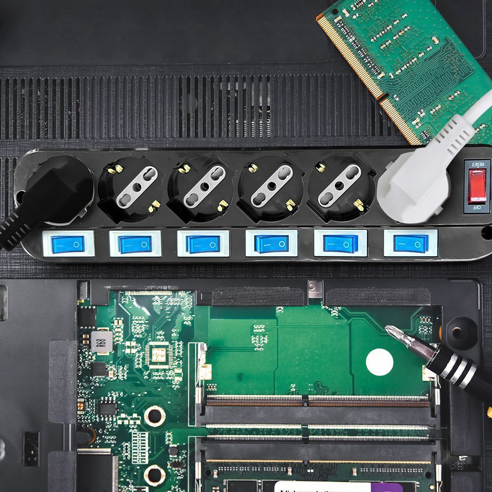Bemutatkozik az 1,5 méteres, egyedi kapcsolóval ellátott elosztó, amely sokoldalú használatra készült otthoni és irodai környezetben. Ez a karcsú, fekete elosztó hat darab 6 tűs aljzattal rendelkezik, amelyek mindegyike saját kapcsolóval van felszerelve a kényelmes vezérlés érdekében. Kompakt kialakításának köszönhetően, 320 mm hosszú, 100 mm széles és 40 mm magas, zökkenőmentesen illeszkedik bármilyen helyiségbe. A maximálisan 3500 wattos terhelés elviselésére tervezett egység 16 A bemeneti áramot és az Ön igényeihez igazított kimeneti feszültséget támogat. A rugalmas elhelyezés érdekében nagy, 1500 mm-es vezetékhosszal is rendelkezik. A biztonság a legfontosabb; ezért ez az aljzat IP20 besorolású, amely tartósságot biztosít beltéri környezetben. Hosszú élettartamra és villódzásmentes működésre tervezték, így ideális folyamatos használatra a teljesítmény feláldozása nélkül. Garanciával és energiahatékonysági szabványoknak megfelelően készült, ez a termék tökéletes azok számára, akik optimalizálni szeretnék elektromos áramfogyasztásukat. Az 1,5 méteres, egyedi kapcsolóval ellátott elosztó nélkülözhetetlen kiegészítője bármely munkaterületnek vagy otthonnak, egyszerűsítve az energiaigényt, miközben fenntartja a biztonságot és a hatékonyságot.