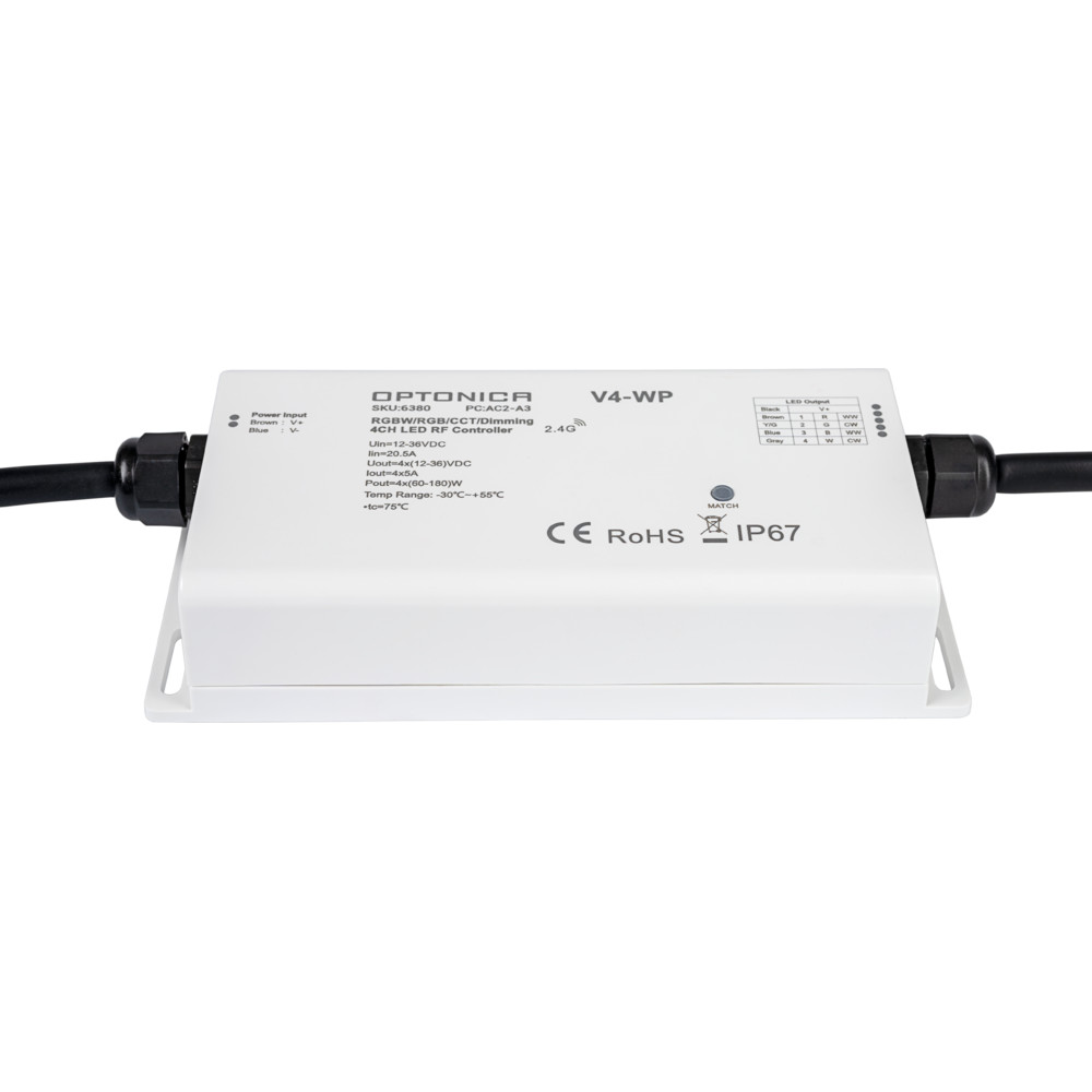 4 csatornás állandó feszültségű LED vízálló rf vezérlő, IP67, Optonica, 6380