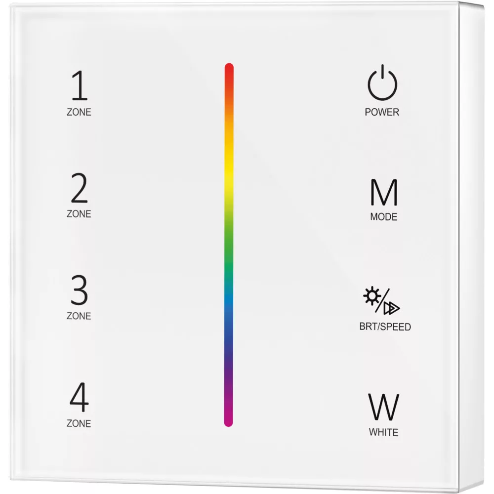 Optonica 4 zónás RGB/RGBW távirányító, fehér – professzionális vezérlő RGB és RGBW LED rendszerekhez. Négy független zóna kezelését teszi lehetővé, így külön-külön szabályozhatók a világítási körök. Intuitív gombkiosztás a gyors színválasztáshoz, fényerő-szabályozáshoz és előre beállított dinamikus effektekhez; memóriafunkcióval az utolsó beállítások visszaállításához bekapcsoláskor. Kompakt, elegáns fehér kivitel, egyszerű párosítás Optonica vezérlőkkel és egyéb kompatibilis LED vezérlőkkel, ideális hangulatvilágítások, rejtett világítások és dekorációs fények precíz szabályozására
