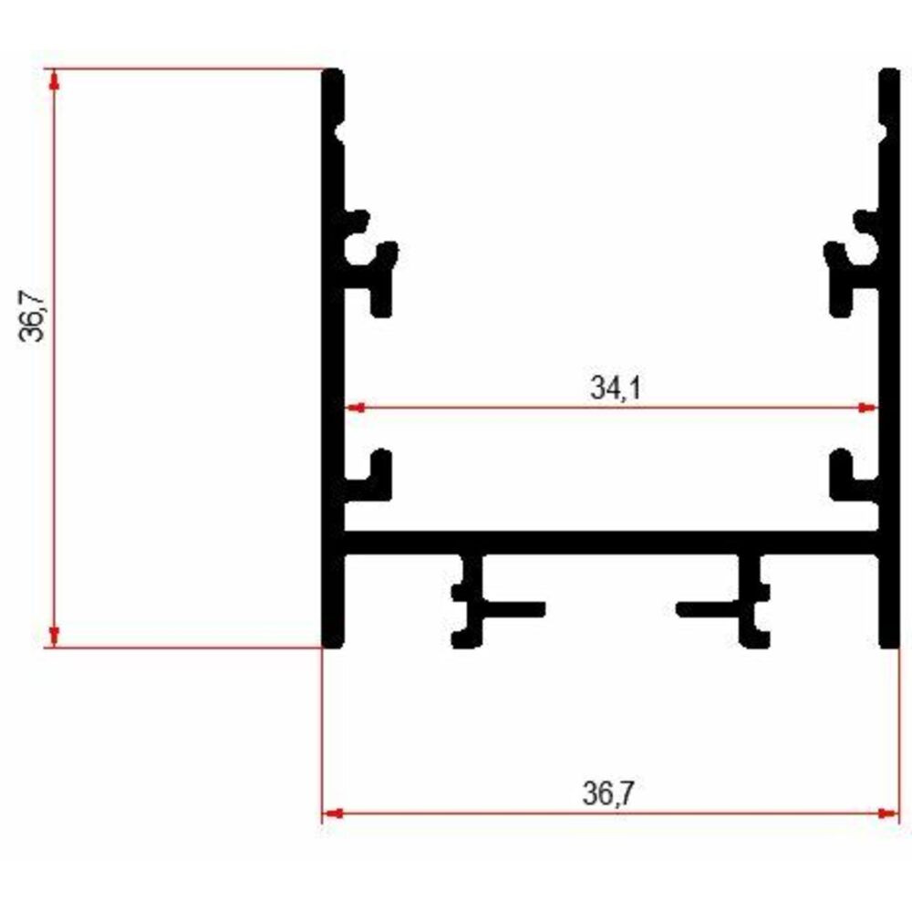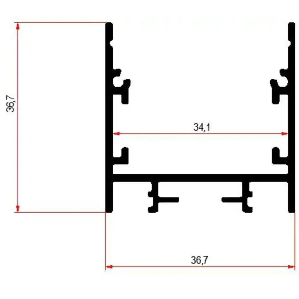 A 36,7 mm-es magasságával és 36,7 mm-es szélességével négyzet alakú, modern és alkalmazkodó tervezést kínál, amely különböző világítási alkalmazásokhoz alkalmas. A 6100 mm-es hossza lehetővé teszi a zökkenőmentes integrációt és testreszabást a specifikus világítási igények alapján. Ez a profil LED szalagokkal kompatibilis, akár 27,00 mm szélességig, ami rugalmasságot biztosít a világítási tervezésben. A 435 VL ideális a hangulatos világítás létrehozására, legyen az felületre szerelve vagy függesztett formában, így sokoldalú választás számos világítási forgatókönyvhöz. - A profil fedő és a végzáró külön kapható. -