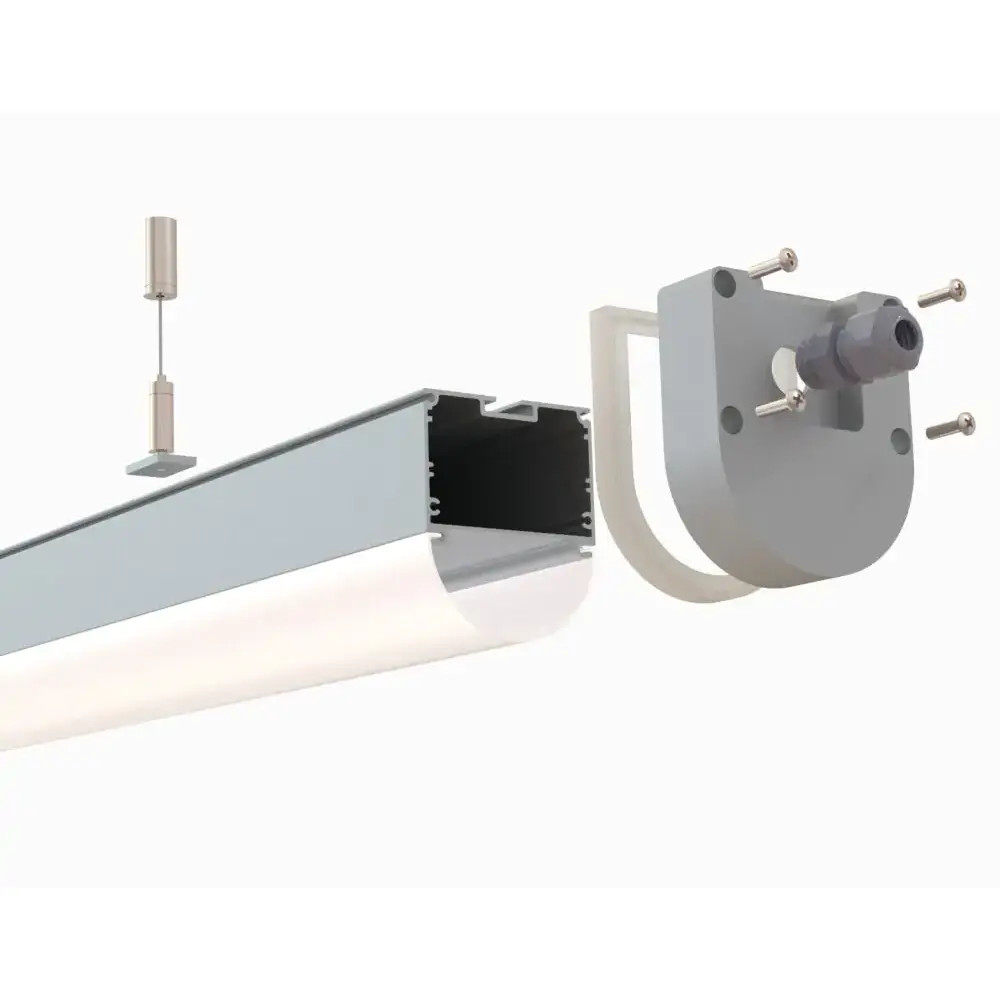 A 540-es sorozat diffúzor lencsével és végkapcsolókkal rendelkezik, amelyek gumi tömítésekkel és kábelfogókkal vízállóvá teszik. Könnyen felszerelhető felületi rögzítőklipszekkel, és süllyesztett LED csatornaként is használható, bár a felfüggesztő készletet külön kell megvásárolni. - A profil fedő és a végzáró külön kapható. -