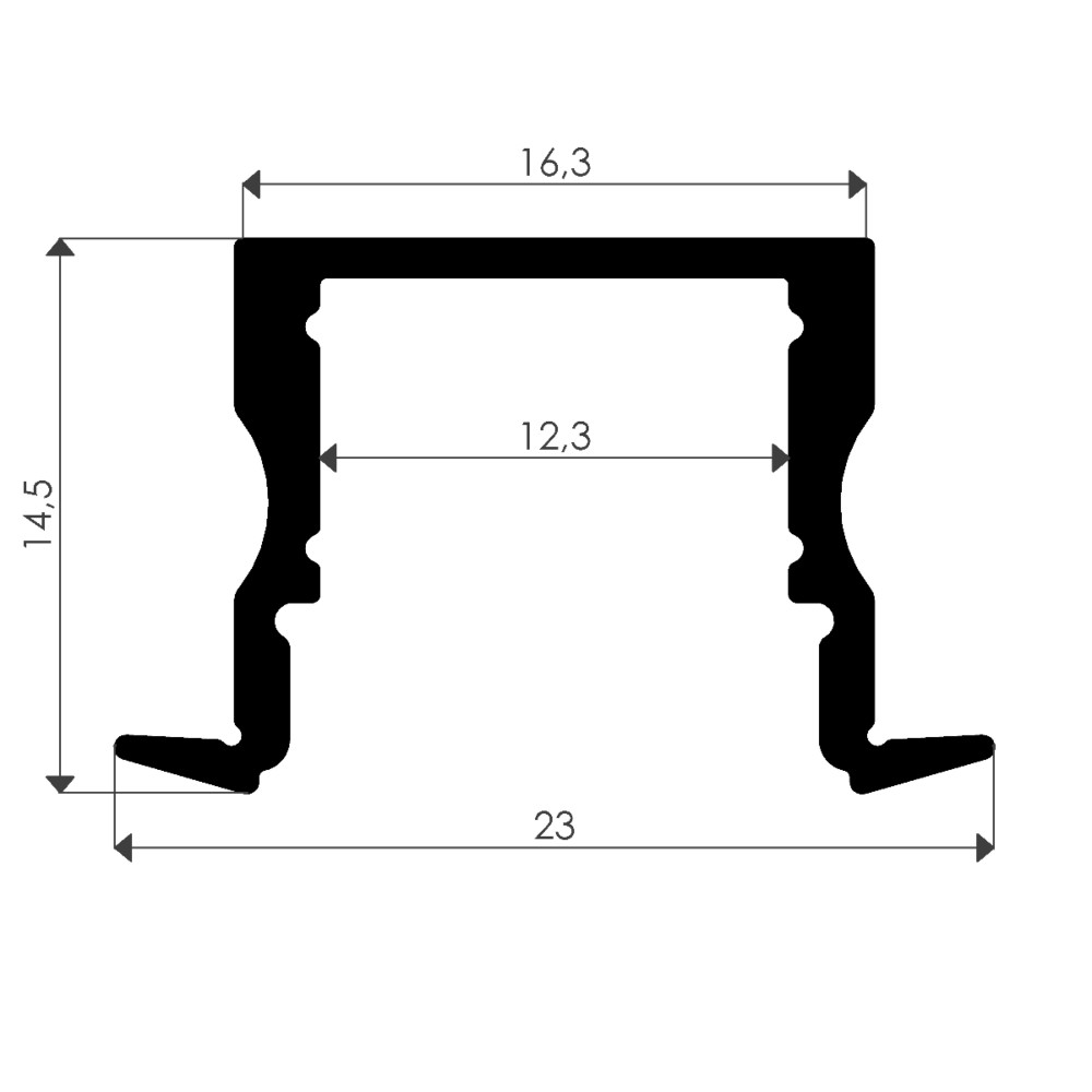 Alacsony profilmagassága 15 mm, szélessége 23 mm, a 972 VL diszkrét és modern dizájnt kínál, amely alkalmas különböző süllyesztett világítási alkalmazásokhoz. A 6100 mm-es hossza zökkenőmentes integrálást és testreszabhatóságot tesz lehetővé a konkrét világítási igények alapján. Kifejezetten süllyesztett gipszkarton alkalmazásokhoz szánt, a 972 VL ideális a tiszta és kifinomult megjelenés létrehozásához. Vékony és alacsony profilú dizájnja fokozza a kifinomultságot, alkalmassá téve különböző lakó- és kereskedelmi alkalmazásokhoz, ahol egy finom és diszkrét világítási megoldásra van szükség. - A profil fedő és a végzáró külön kapható. -