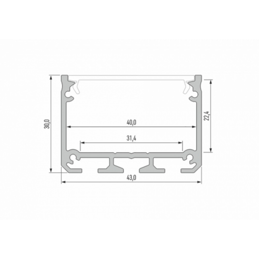 ILEDO típusú LED szalag profilunk  2 méteres kiszerelésben. (a fedő, a végzárók külön kaphatók!) A profil 31,35 mm széles, így akár 3 sor LED szalagot is beletehetünk.