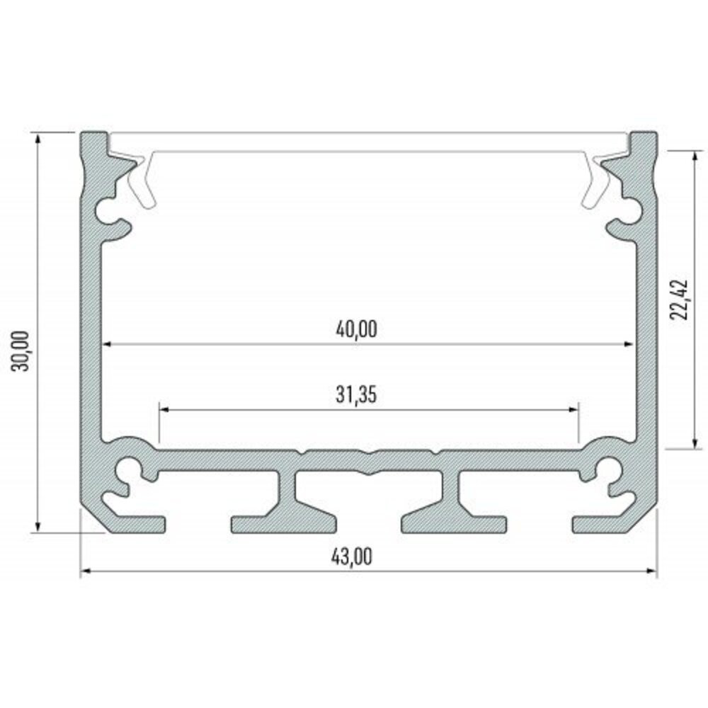 ILEDO típusú LED szalag profilunk  2 méteres kiszerelésben. (a fedő, a végzárók külön kaphatók!) A profil 31,35 mm széles, így akár 3 sor LED szalagot is beletehetünk.