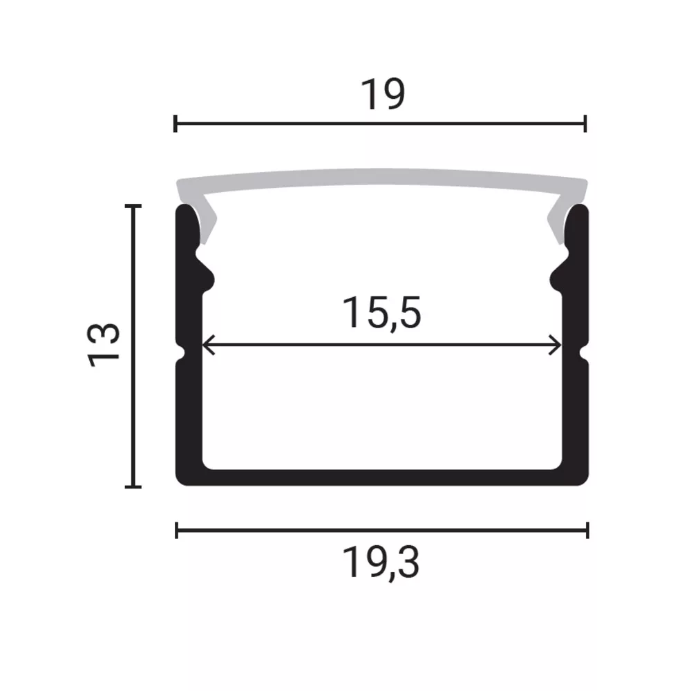 Optonica alumínium profil LED szalagokhoz, 19 × 13 mm, ezüst házzal és fehér takaróval. Masszív, anodizált alumínium szerkezet javítja a hőelvezetést és meghosszabbítja a LED szalag élettartamát, miközben mechanikai védelmet nyújt a sérülésekkel és porral szemben. A fehér (opál) takaró egyenletes fényelosztást biztosít, csökkenti a pontszerű fényfoltokat és kellemes, homogén megvilágítást eredményez. Külső méretei 19 mm × 13 mm, ezért kiválóan alkalmas belső világítási megoldásokhoz, bútorvilágításhoz, lépcsők és polcok alatti rejtett fényekhez. Egyszerűen felszerelhető csavarokkal vagy gyorsrögzítő klipszekkel, vágás után a megfelelő hosszra alakítható, a szereléshez használható végzárók és rögzítőelemek alkalmazásával teljesen zárttá és esztétikussá tehető. Esztétikus megjelenést, jobb hőkezelést és diffúz fényt biztosít bármely beltéri LED szalag alkalmazásban.