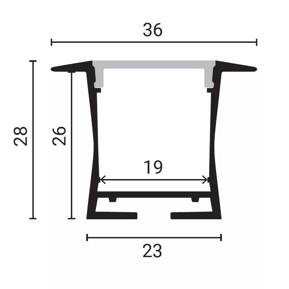 Optonica alumínium profil LED szalagokhoz, 36x28 mm, ezüst test és fehér diffúzor fedő. Robusztus, extrudált alumíniumból készült profil, amely hatékony hőelvezetést és mechanikai védelmet biztosít a LED szalagok számára, ezáltal növeli azok élettartamát. A fehér (opál) fedő egyenletes fényeloszlást biztosít és csökkenti a pontszerű fényforrások okozta káprázást, így esztétikus, homogén megvilágítást eredményez. Univerzális kialakítása lehetővé teszi ragasztással vagy rögzítőklipszekkel történő felszerelést falra, bútorba süllyesztve vagy felületre szerelve. Kompatibilis szabványos LED szalagokkal, és kiegészítő tartozékokkal (végzárók, rögzítők) egyszerűen telepíthető. Letisztult, professzionális megjelenése miatt ideális modern belső terekhez, konyhabútorokhoz, világítópolcokhoz és kiállítási installációkhoz.