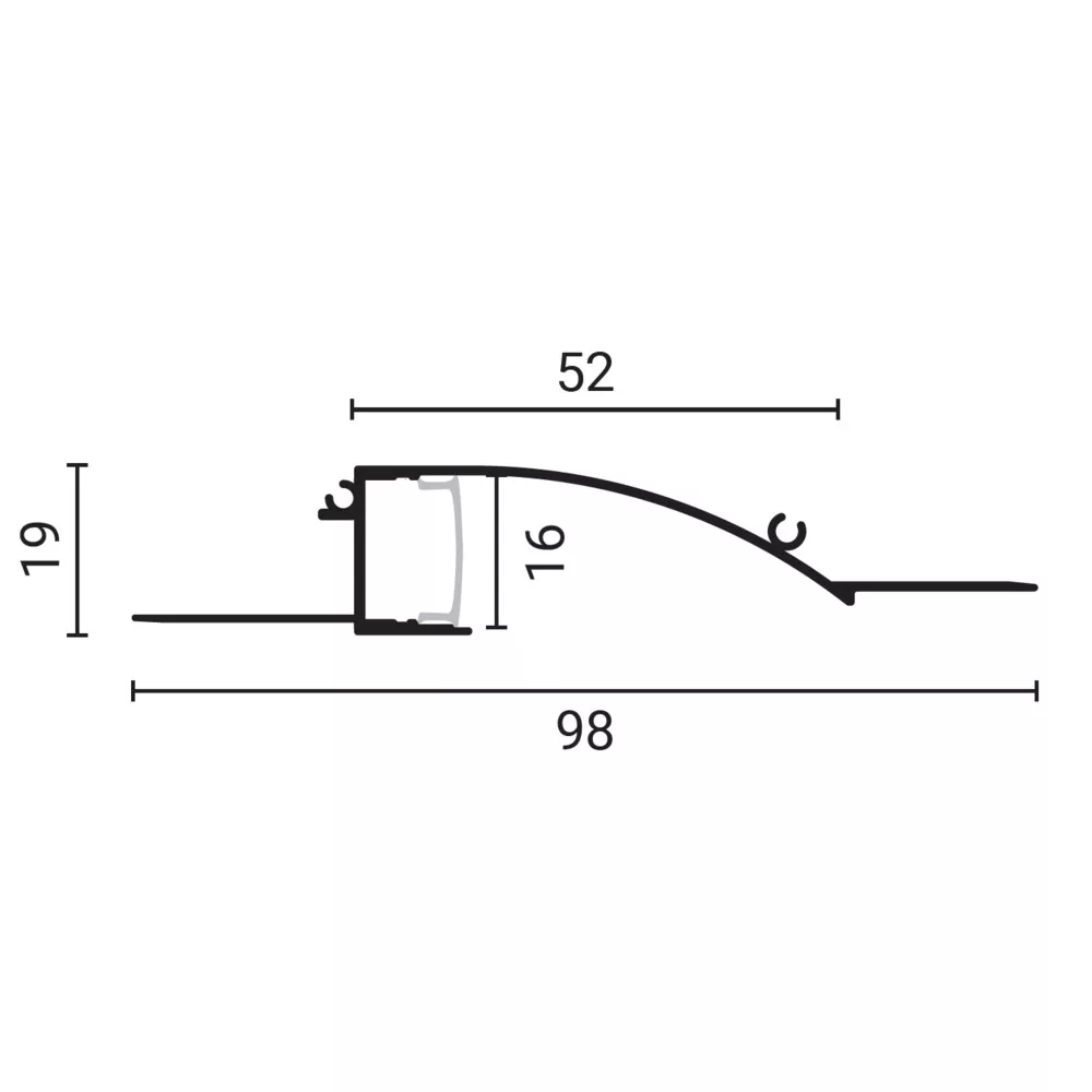 Optonica alumínium profil LED szalagokhoz (98 × 19 mm) ezüst testtel és fehér fedővel. Masszív, extrudált alumíniumból készült konstrukció, amely hatékony hőelvezetést biztosít, ezáltal hozzájárul a LED szalagok hosszabb élettartamához és megbízható működéséhez. A fehér diffúzor fedő egyenletes fényeloszlást biztosít, csökkenti a pontszerű fényfoltokat és véd a portól, sérülésektől. Egyszerű, gyors szerelhetőség felületre és beépített alkalmazásokhoz egyaránt; kompatibilis a szabványos LED szalagokkal és a kereskedelemben elérhető rögzítőklipszekkel, végzárókkal. Alkalmas bútorvilágításhoz, konyhai munkalapok alá, polcokhoz, kirakatokhoz és dekorációs megoldásokhoz, ahol esztétikus, egyenletes fényképzésre és hatékony hőkezelésre van szükség.