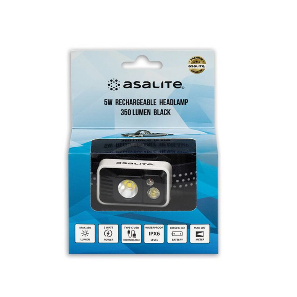 Az Asalite Akkumulátoros 5W LED Fejlámpa három funkcióval rendelkező lámpa, amelyet egy 5W teljesítményű, extrafényű CREE LED, illetve további egy 1W-os fehér LED és egy 0,5W-os piros LED működtet. Ennek köszönhetően a maximális funkcióval rendkívül magas, 350 lumenes fényerő biztosított. Emellett a termék rendelkezik egy energiatakarékos fényerővel, valamint piros fényű világítási móddal.