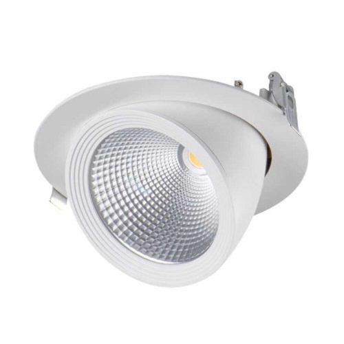 Fehér színű, kör alakú süllyesztett lámpatest, alumínium ötvözetből.