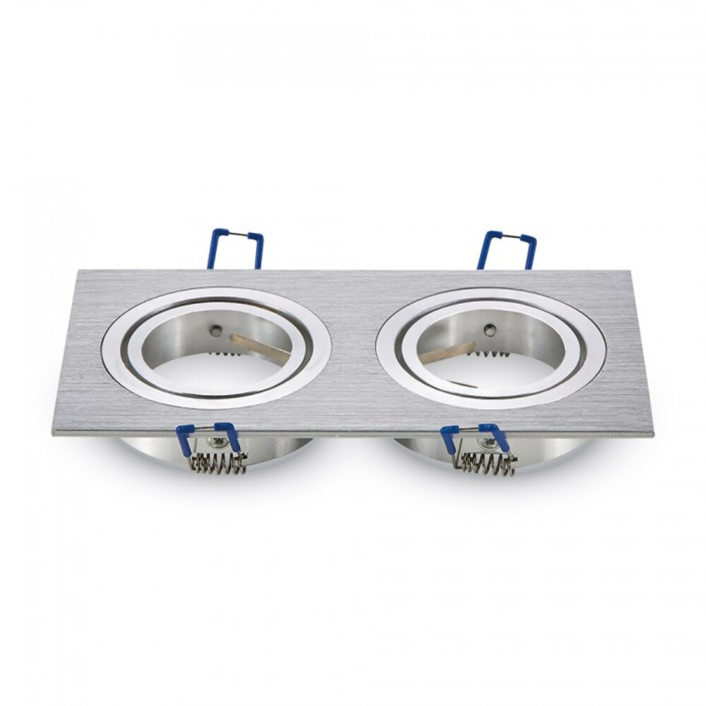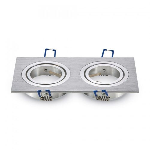 Beépíthető spot lámpatest , négyszögű , dupla keret , 2 x MR16 , 2 x GU10 , szálcsiszolt króm