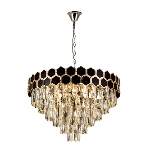 A Catherine Glitter R lámpa elegáns fekete-arany színkombinációval rendelkezik, ami esztétikailag vonzóvá teszi bármilyen helyiségben. Az IP20-as környezeti ellenállás, valamint a -10°C-tól +40°C-ig terjedő működési hőmérséklet-tartomány lehetővé teszi, hogy a lámpa különböző helyszíneken használható legyen. A lámpa súlya 13,4 kg, és könnyedén telepíthető a kívánt helyre. A három év standard garancia, valamint a kiterjesztett két év garantálja a termék megbízhatóságát és tartósságát.