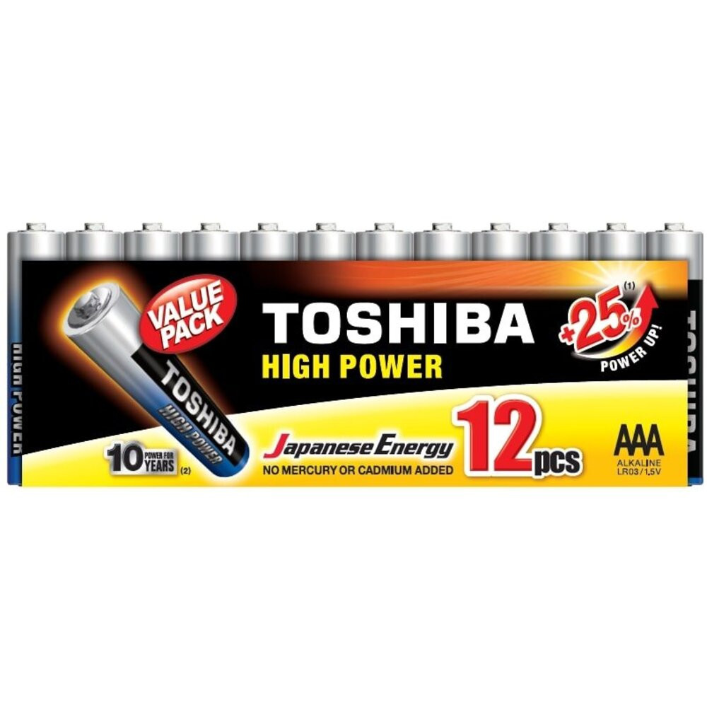 Ceruzaelem AAA (LR03) , 1.5 Volt , 12 darab , tartós , elem , High Power , TOSHIBA