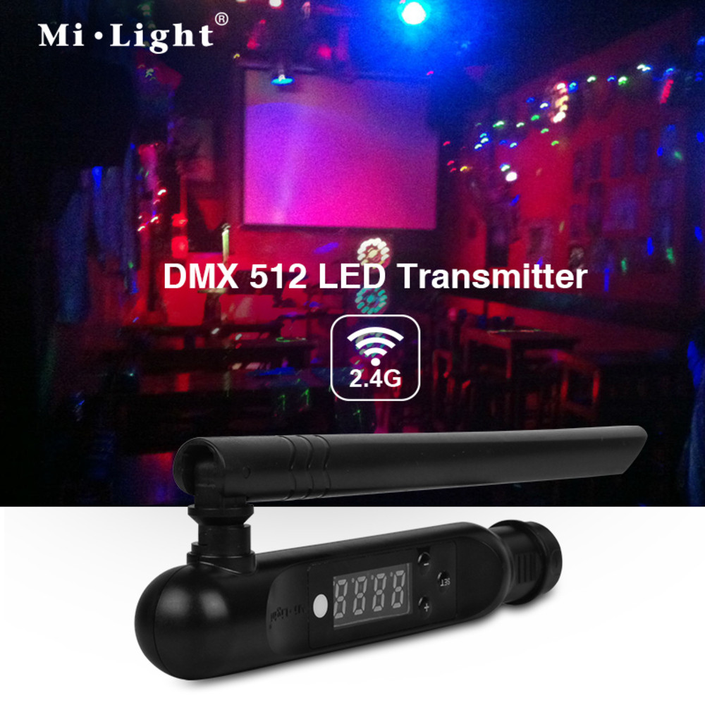 Antennával ellátott jeladó egység, mely bármely DMX 512 vezérlő kimenetére csatlakoztatható és 2,4 GHz frekvencián vezeték nélküli (rádiófrekvenciás) kapcsolatot teremt RGB LED-es eszközökkel.