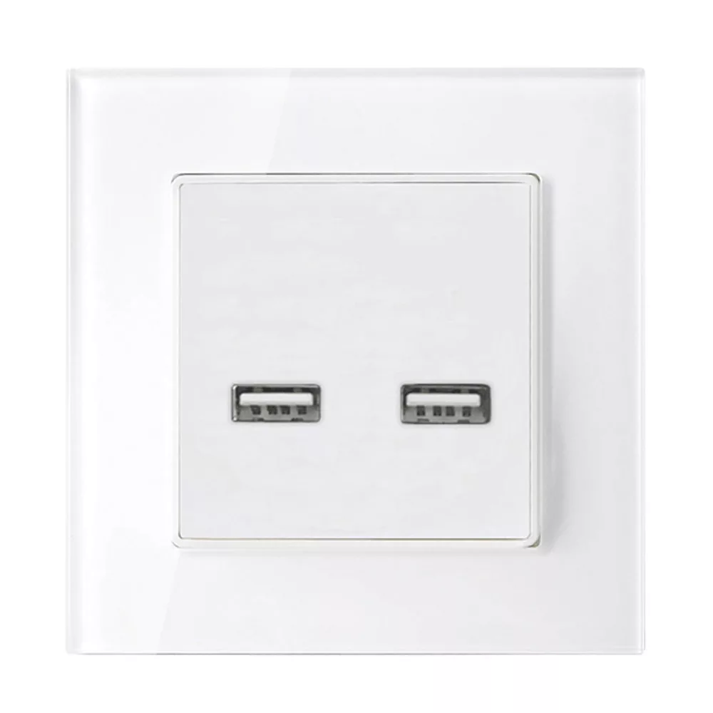 DOUBLE USB SOCKET GLASS FRAME WHITE