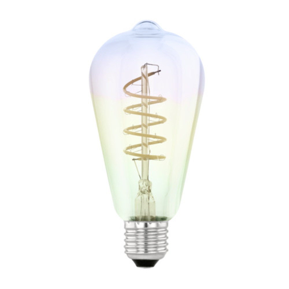 Az EGLO Vintage LED special E27 dekoratív LED izzó (ST64) irizáló üveg borítással rendelkezik, amely spirál alakú LED-eket tartalmaz. A speciális bevonat csillogó holografikus hatást teremt, szivárvány színek széles választékával. A 4 wattos LED izzó kellemes meleg fehér fényt bocsát ki. Egyedi megjelenése miatt a LED izzó önálló dekoratív világítószerként is jól működik, figyelemfelkeltő elemet teremtve bármely lakóterületen. A fényforrás tartozék a termékhez.