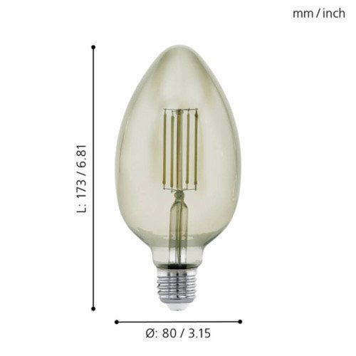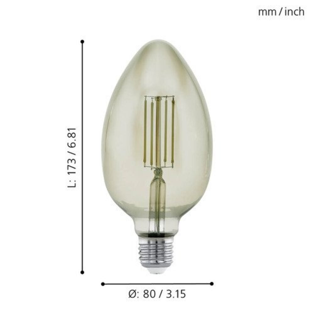 Az EGLO Vintage special smoky LED E27 fényforrás a modern és vintage stílusú világítás tökéletes kombinációja. 3000 K melegfehér színhőmérséklete kellemes, otthonos fényt biztosít, míg az üveg burkolat elegáns megjelenést kölcsönöz a térnek. A termék E27-es foglalattal rendelkezik, és a maximális teljesítménye 4 W, amely körülbelül 30 W-os hagyományos izzónak felel meg.