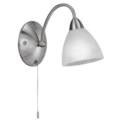 A PASTO fali lámpa elegáns matt nikkel fém vázzal és fehér alabástrom üvegbúrával rendelkezik. A lámpa egyszerűen ki- és bekapcsolható a készülék oldalán található húzókapcsolóval. Klasszikus megjelenésének köszönhetően kiválóan illeszkedik a vidéki stílusú belső térbe, és kellemes fényt biztosít a hálószobában, nappaliban, étkezőben vagy folyosón. A fényforrás (E14) nem tartozék a termékhez. Max. 40W teljesítményű izzó használható.
