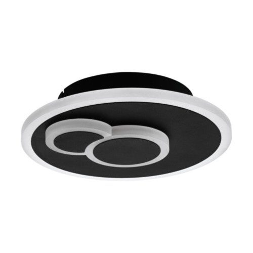 A CADEGAL LED mennyezeti lámpa egy elegáns kör alakú fekete fém panel, amelyet egy akril LED keret vesz körül. A design két kör alakú fém panelt tartalmaz, amelyek a termék közepére vannak rögzítve, és világító akril keretekkel rendelkeznek. Az integrált LED-ek rejtve vannak, és semleges fehér fényt bocsátanak ki. Ez a sokoldalú kialakítás lehetővé teszi, hogy a terméket könnyedén falilámpaként is használjuk. A klasszikus mennyezeti lámpa bármilyen belső térbe illeszkedik, jól mutat a konyhában, nappaliban, hálószobában, folyosón, étkezőben vagy irodában. A fényforrás tartozék a termékhez, így azonnal használatra kész.