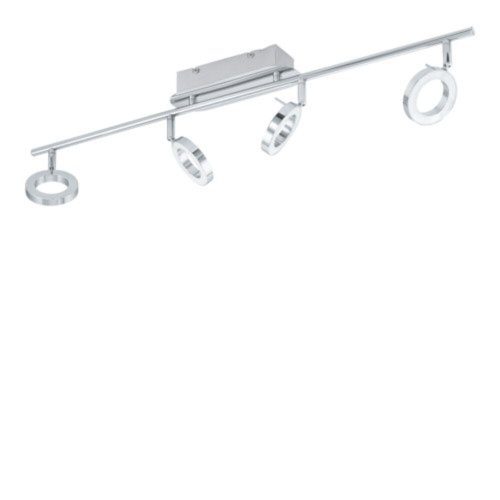 A NAUDELLA LED mennyezeti lámpa króm bevonatú fém anyagból készült, négy gyűrű alakú spotlámpával rendelkezik. Az integrált LED-ek, melyek szatén műanyag borítással rendelkeznek, kellemes, meleg fehér fényt bocsátanak ki. A dizájn harmonikusan illeszkedik a trendi modern stílushoz. Forgatható fejeinek köszönhetően a klasszikus mennyezeti spotlámpa minden térbe alkalmas, legyen szó a konyháról, nappaliról, hálószobáról, folyosóról vagy étkezőről. A fényforrás tartozék a termékhez, maximális teljesítménye 4x5W.