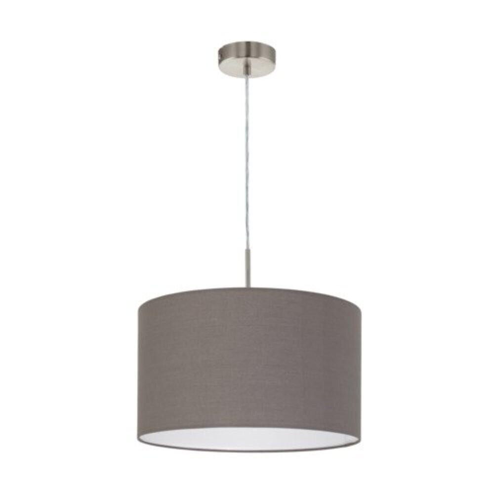 Ez a függőlámpa a PASTERI sorozatból készült szatén nikkel acélból és antracit-barna anyagból. A reflektorhoz E27-es izzóra van szükség.