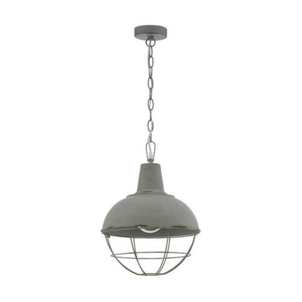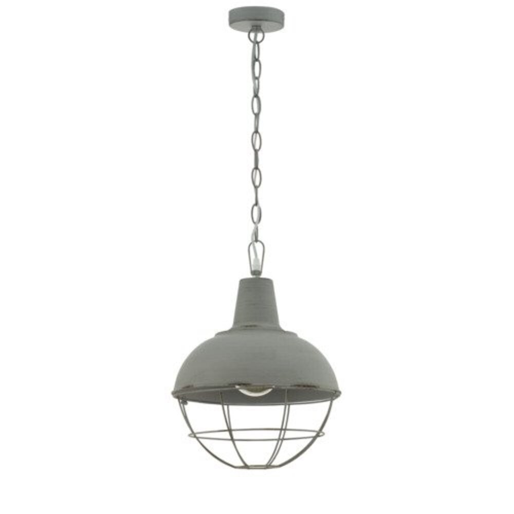 A CANNINGTON 1 függőlámpa szürke patinás fémből készült, drótkeretes lámpaernyővel. A dizájnhoz dekoratív lánc tartozik, ami kiegészíti a lámpa jellegzetes stílusát. Autentikus, kopottas megjelenésével tökéletesen beilleszkedik az ipari stílusú belső terekbe, legyen szó a nappaliról vagy az étkezőasztal felett helyezkedik el. A képen látható izzó nem tartozék. Az terméknek E27-es foglalata van, és 1 E27-es izzóra van szüksége.