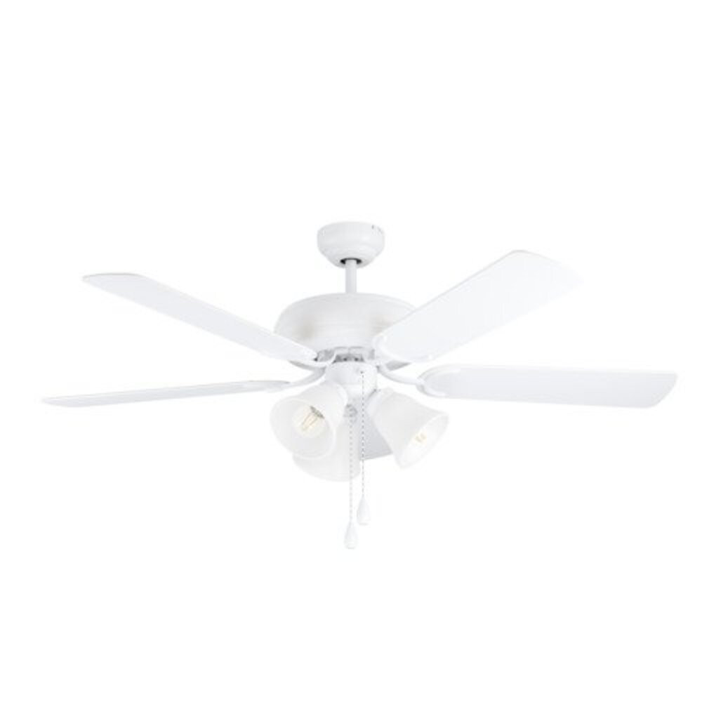 A LAS PALMAS mennyezeti ventilátor lámpával fém burkolattal, matt fehér színben készült, és öt visszafordítható laminált fa lapáttal rendelkezik, melyek közül az egyik oldal fehér, a másik pedig tölgy színű. A design három opál üvegből készült árnyékolót tartalmaz. A húzózsinórok segítségével a fény felkapcsolható és lekapcsolható, emellett három különböző sebességi beállítás közül lehet választani. A ventilátor nyáron és télen is használható, mivel a forgás iránya megfordítható. Mivel a ventilátor beépített AC motorral rendelkezik, az légáramlási teljesítménye 3.45 (m³/min)/W. 132 cm átmérőjével ideális 20-27 m² alapterületű helyiségekbe. A termék 13°-ig dőlt mennyezetre is könnyedén felszerelhető. Az E27 lámpa foglalatokkal ellátott ventilátor fényforrást igényel, azonban az E27 izzók nincsenek benne.
