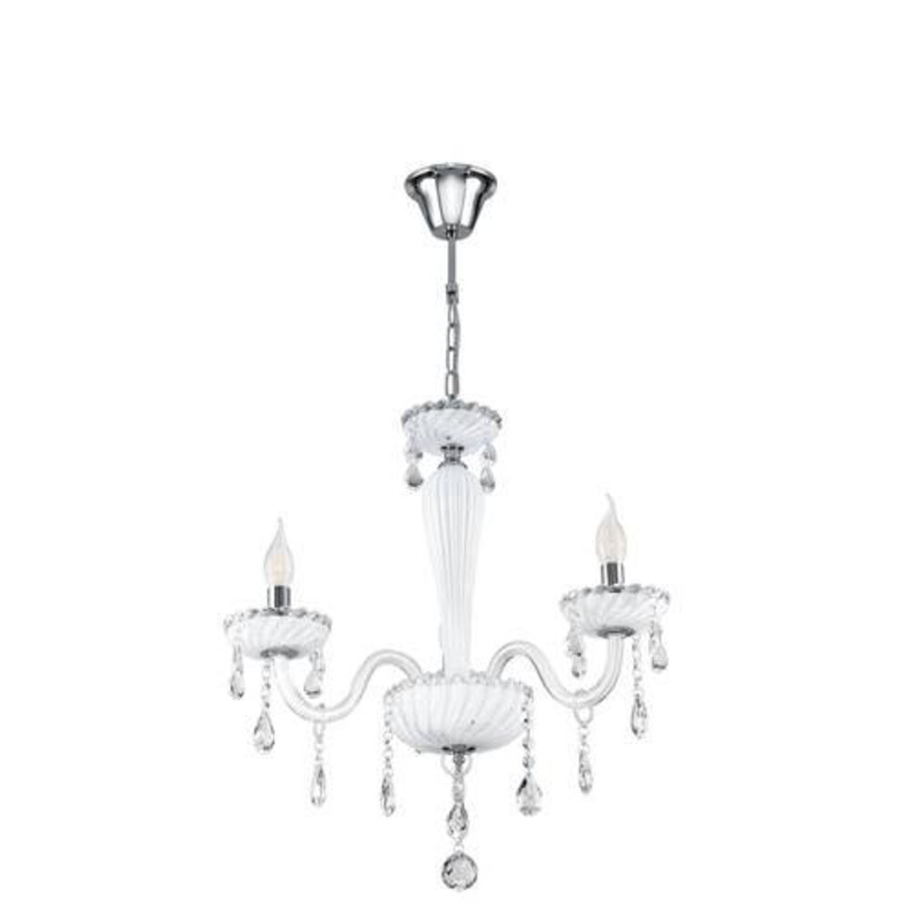 Ez a függő lámpa a CARPENTO sorozatból krómozott acélból és fehér üvegből készült. A reflektorhoz három E14-es lámpa szükséges.