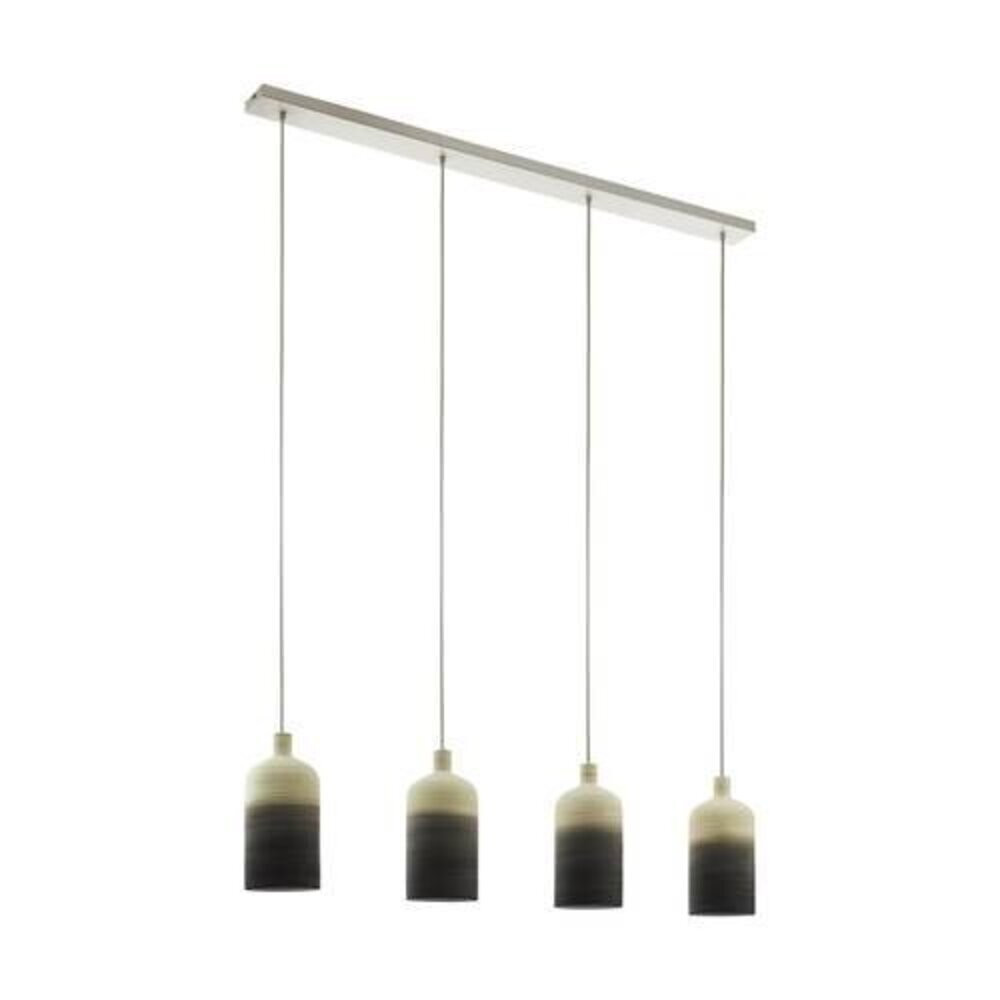 Az AZBARREN függeszték lámpa négy cilindrikus kerámiabúrával rendelkezik, melyek bézs és szürke árnyalatokban pompáznak, és egy bézs színű fém mennyezeti rögzítéssel készült. A lágy, földszínek nyugtató légkört teremtenek, és kiválóan illeszkednek számos belsőépítészeti stílushoz. A függőlámpa ideális választás a megfelelő hangulat megteremtésére bármely térben, legyen szó a nappaliról vagy egy hosszú étkezőasztal felett. A termék 4 x E27 típusú fényforrást igényel, amely nem tartozék.