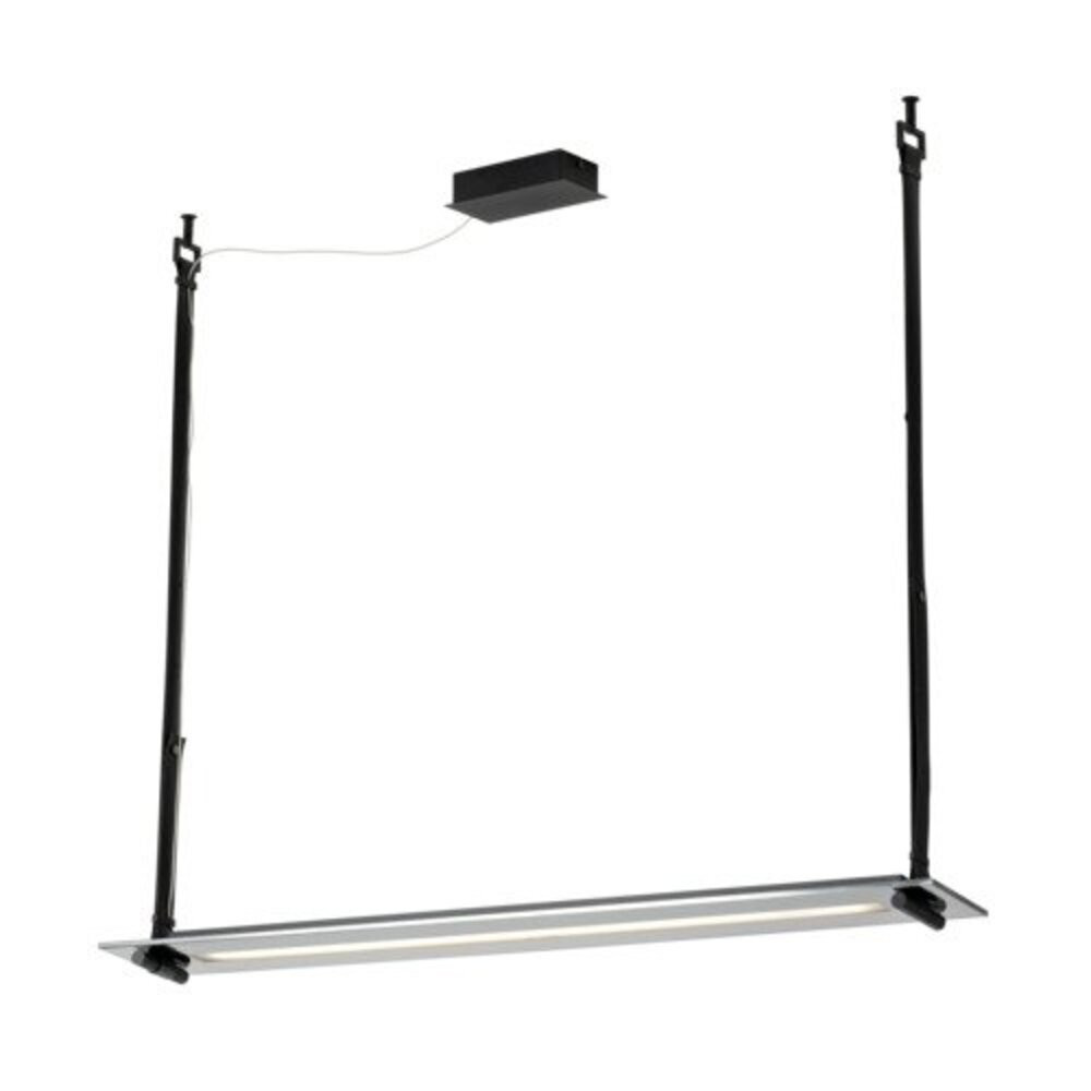 A PRAVOMERA LED függőlámpa egy elegáns és modern világítástechnikai megoldás, amely füstölt fekete üveglappal rendelkezik, mérete 116 cm. A lámpa két fekete, állítható bőr hevederrel van felfüggesztve, és integrált LED fényforrással rendelkezik, amely kellemes, személyre szabható fényt biztosít. A lámpa alapjában található "touch-me" zónával lehetőség van a világítás ki- és bekapcsolására, a fényerő szabályozására, valamint a színhőmérséklet váltására. Választhat meleg fehér, semleges fehér és hideg fehér fényt. A letisztult és vonalvezetésű dizájnnak köszönhetően a lámpa harmonikusan illeszkedik a modern enteriőrökbe, és figyelemfelkeltő elemként szolgálhat a nappaliban vagy egy hosszú étkezőasztal felett. Fontos megemlíteni, hogy a fényforrás tartozék a termékhez.