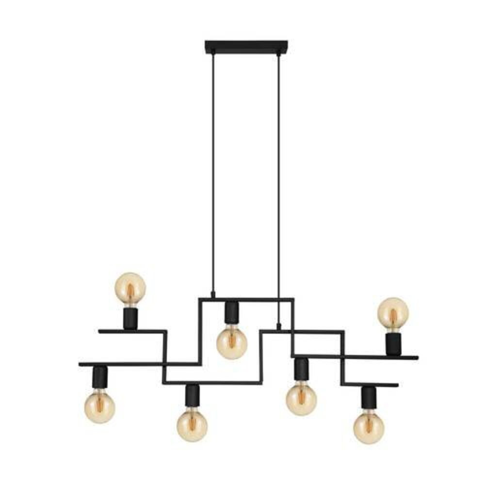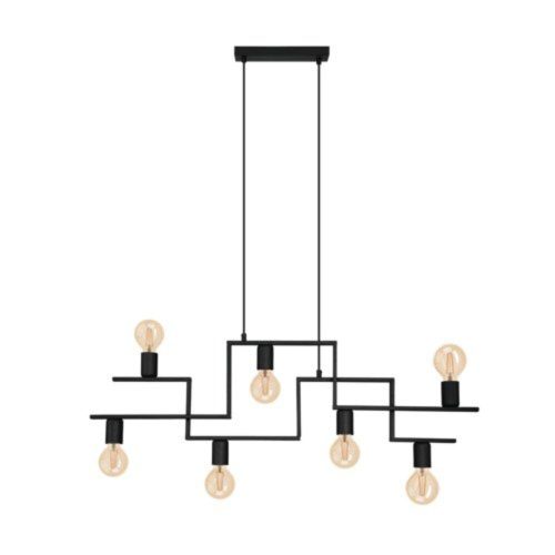A FEMBARD függőlámpa profilját két egymástól eltolódó, fekete fém kar jellemzi. Mivel a karok különböző módon vannak hajlítva, a hét látható izzós foglalat magassága és pozíciója változó. Ez a szokatlan megoldás egyedi érintést ad a lámpának, legyen szó nappaliról vagy hosszú asztalról az étkezőben, és bármilyen belsőépítészeti stílushoz passzolna. A képen látható izzók nem tartoznak a termékhez. Az E27 foglalatokhoz 7 db E27 izzó szükséges.