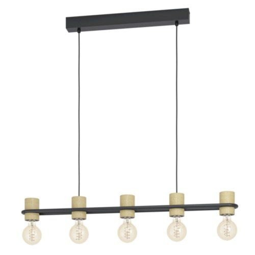 A CHIEVELEY függeszték lámpa egy elegáns, elliptikus fekete fémgyűrűt ölel körül, amely öt vertikális lámpatartót foglal magában, természetes gumifa anyagból készült. Ezzel a természetes dizájnnal a termék tökéletesen illeszkedik a minimalista belső terekhez. A fa és fém divatos kombinációja figyelemfelkeltő világítást teremt otthonában. A termék 5 darab E27-es fényforrást igényel, amelyek nem tartozékai a csomagnak.