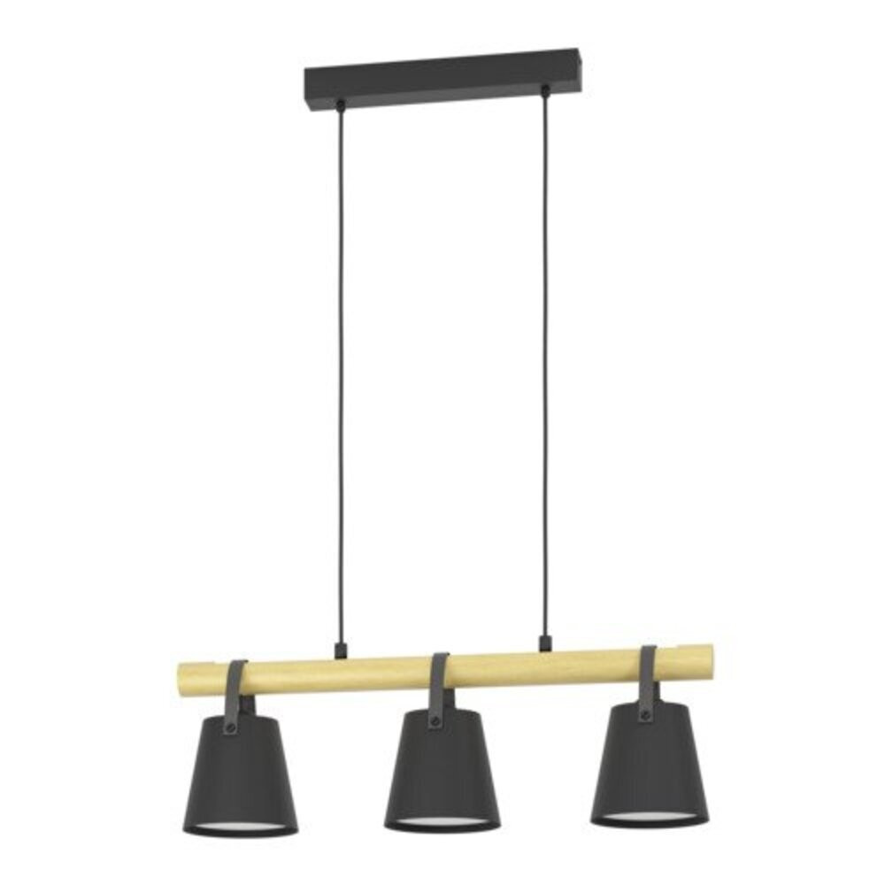 A BOYLE függeszték stílusos megjelenésével tökéletes kiegészítője lehet modern belső tereknek. A fekete fém mennyezeti tartó és a természetes gumi fából készült kereszttartó harmonikus kombinációja érdekessé teszi a lámpát. Három fém búra, mesterséges fekete bőr hevederekkel rögzítve, egyedi és trendi megjelenést biztosít. A búrák belső fehér bevonata és az alatta elhelyezett fehér műanyag diffúzor egyenletes és hatékony világítást biztosít. Ideális választás a nappaliban vagy egy hosszú étkezőasztal fölé, hogy barátságos fényt teremtsen. A termékhez nem tartozik fényforrás, így ezt külön kell beszerezni.