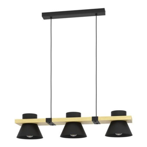 A vintage stílusú beltéri lámpa, az EGLO Trend & Style termékcsaládból, modern és elegáns megjelenésével tökéletes választás otthonába. A lámpa burkolata acél és fa kombinációjából készült, mely fekete és barna színekben elérhető. A lámpa három darab E27 foglalattal rendelkezik, és a maximális teljesítmény 3x15W.