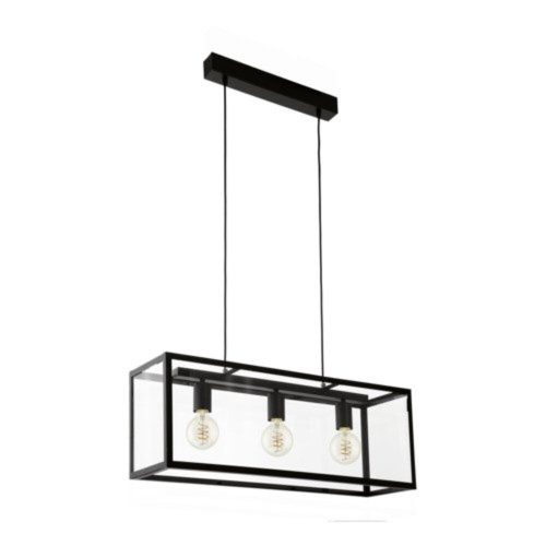 A CHARTERHOUSE függesztett lámpa fekete fémből készült testtel és tiszta üvegpanelekkel rendelkezik. Ezek a panelek közvetlen kilátást nyújtanak a belsejében lévő három izzóra. Ez a függesztett lámpa a modern belsőépítészeti stílusok tökéletes befejező érintése és különleges világítást teremt a nappaliban vagy az étkezőben. A termék 3 x E27 izzót igényel, amelyek nem tartoznak a csomaghoz.