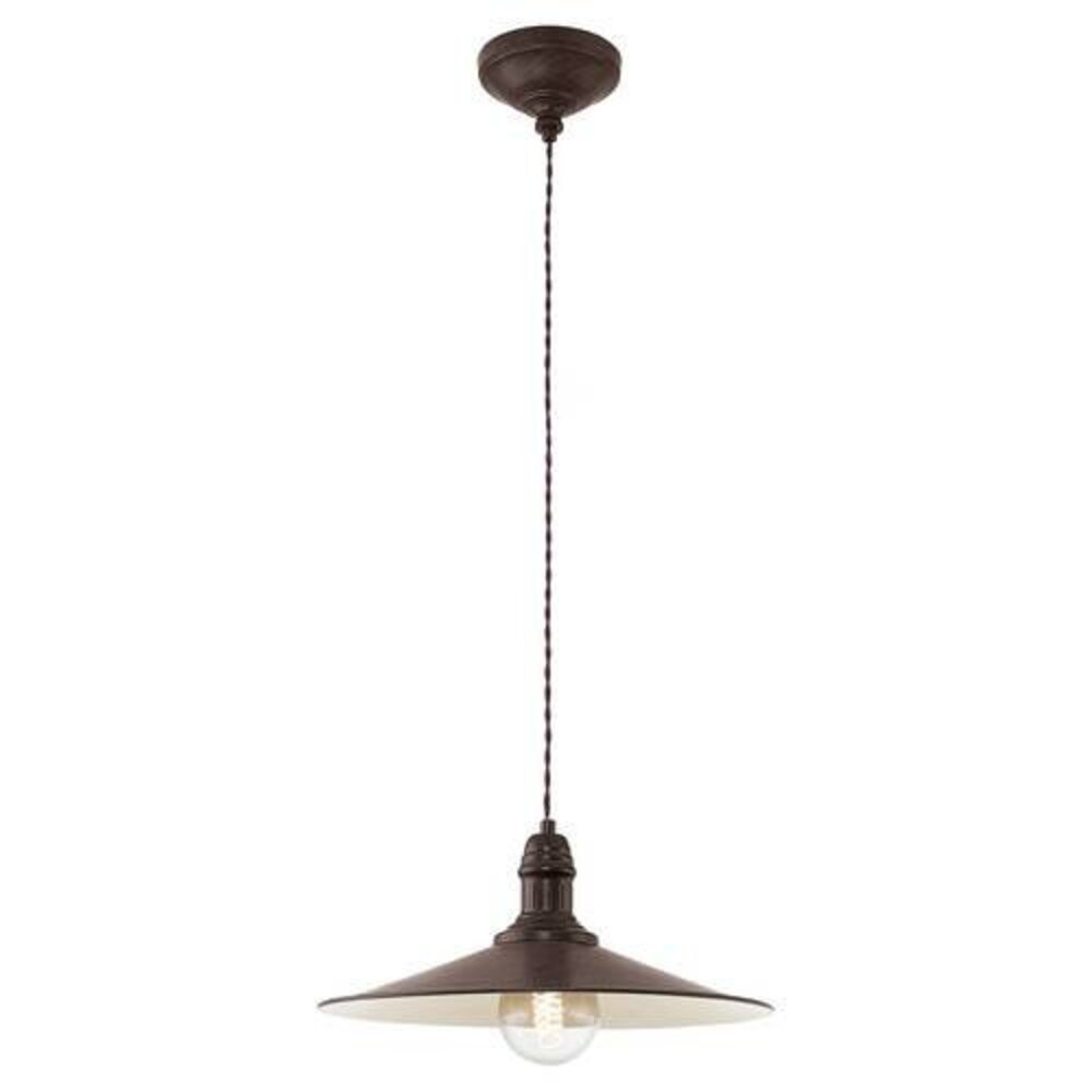 A STOCKBURY függőlámpa kúp alakú fémlámpabúrával rendelkezik, amely antik barna színű, és a belső felülete bézs színű. A termék tartalmaz egy antik barna színű baldachint két barna textil kábellel, amelyek egymás köré tekergőznek. A termék vintage designja kiegészíti a modern belső tereket, és kellemes világítási megoldást nyújt az Ön számára, legyen szó a nappaliról vagy az étkezőasztal felett. A képen látható izzó nem tartozék. A termék E27-es foglalattal rendelkezik, és E27-es izzót igényel.