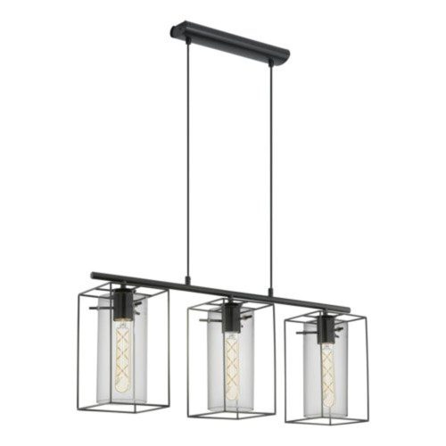 EGLO , 49496 , LONCINO , függeszték , E27 , 3X60W , IP20 , fekete-átlátszó