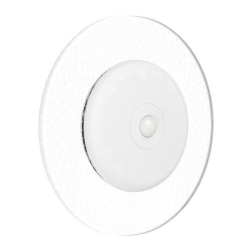 A lámpa burkolata acélból készült, fehér színű, míg az átlátszó műanyag búra elegáns megjelenést kölcsönöz. Az IP20 védettségű lámpa beltéri környezetben ajánlott, kiváló esztétikai értéket képvisel. A mozgásérzékelő automatikusan aktiválja a világítást, amely lapszöge 100°, így széles területet képes megvilágítani.