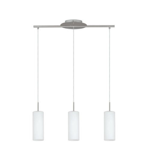 A TROY 3 függőlámpa matt nikkel bevonatú fémkészítésű, három fehér szatén üvegből készült henger alakú lámpaernyővel. Az egyszerű tervezés szinte bármilyen belsőépítészeti stílushoz jól illeszkedik és barátságos világítást teremt bármilyen térben, legyen az nappali vagy étkező. A megvilágítóeszközök nincsenek tartozékban. A termék E27 váltakonyakkal rendelkezik és E27-es izzókra van szükség.