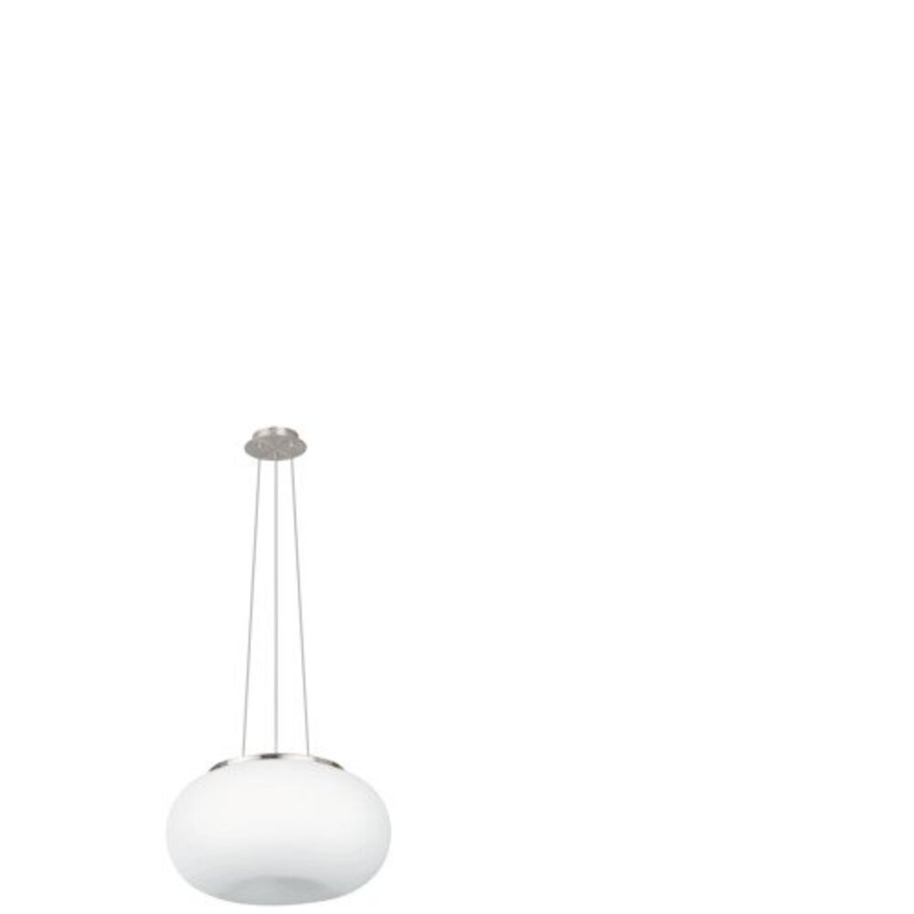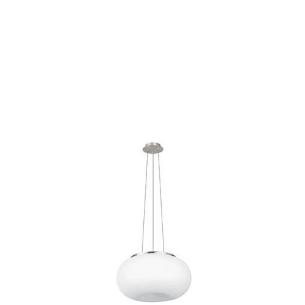 Az OPTICA függő lámpa fehér opál üvegből készült, kerek lámpabúrával rendelkezik, amelynek átmérője 35 cm. Ezt a dizájnt matt nikkel mennyezeti rögzítő és három azonos színű fémkábel egészíti ki. A függö lámpa tökéletesen belesimul a modern belső terekbe, stílusos megvilágítást biztosítva bárhol, legyen az a nappali vagy az étkező. A villanykörtét nem tartalmazza. A terméknek E27 foglalata van, és E27-es izzót igényel.