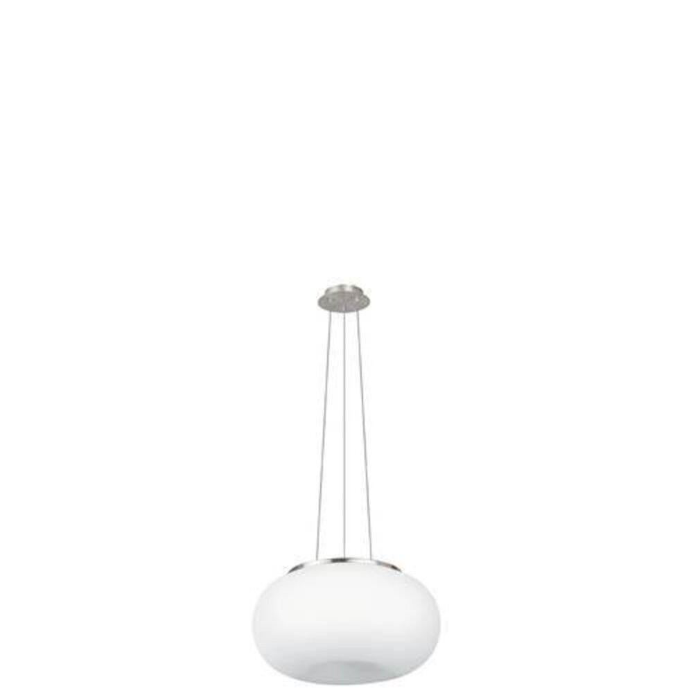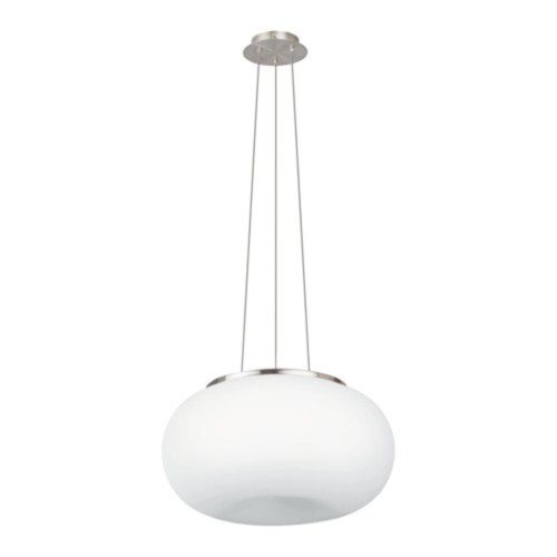 Az OPTICA függőlámpa fehér, opálüveg lámpaernyővel rendelkezik, melynek átmérője 44,5 cm. A dizájn matt nikkel mennyezeti burkolattal és három azonos színű fémkábellel rendelkezik. A függőlámpa egységesen illeszkedik a modern belső terekhez, stílusos világítást biztosítva bármilyen térben, legyen az a nappali vagy az étkező. A lámpa nem tartalmazza a villanykörtét. A terméknek E27-es foglalata van, és E27-es izzót igényel.