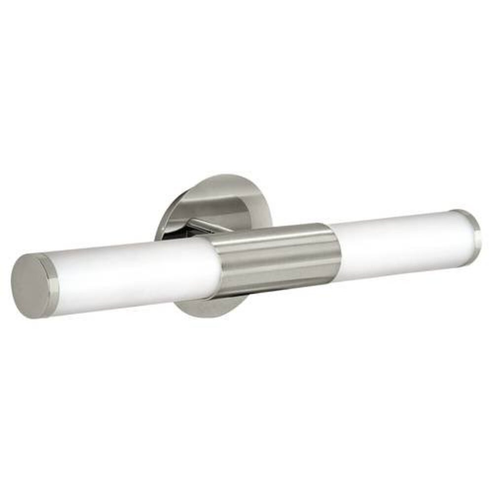 A PALMERA sorozat fali lámpája elegáns megjelenésével és kellemes fényével ideális választás fürdőszobákba. A lámpatest matt nikkel acélból készült, míg a búra opál-matte üvegből készült, biztosítva ezzel a modern esztétikát. A készülék IP44 védettséggel rendelkezik, így ellenáll a fröccsenő víznek. A fali lámpa két E14-es izzóval működik, amelyek nem tartozékai a terméknek. Maximális teljesítménye 2x40W, így elegendő fényt biztosít minden fürdőszobai használatra. A termék magassága 110 mm, hossza 460 mm, míg brutto súlya 1,133 kg. 2 év garanciával kapható.