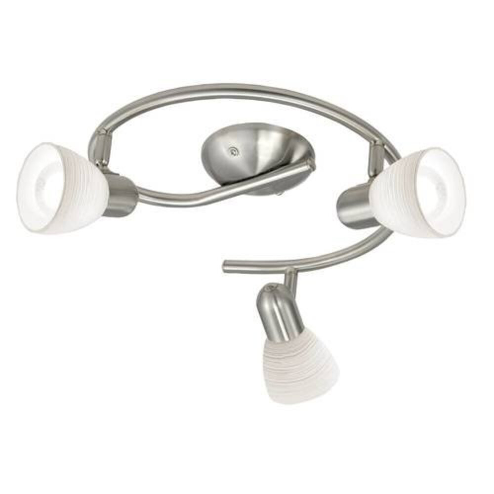 A DAKAR 1 mennyezeti lámpa egy G-alakú fémszerkezetet mutat matt nikkel kivitelben három állítható spotlámpával. A spotlámpák fehér üveg lámpaburával rendelkeznek, amelyeket felváltva technikával díszítettek, és kiegészítik a modern belsőépítészeti stílusokat. Forgatható lámpafejeivel a klasszikus mennyezeti spotlámpa bármely helyiségben jól működik, legyen az a konyha, a nappali, a hálószoba vagy az előszoba. A termékhez 3 x E14 fényforrást kell használni, amelyek nem tartoznak a csomaghoz.