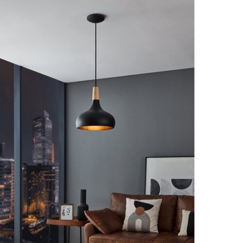 A SABINAR függeszték egy stílusos és modern világítási megoldás, amely fekete fém búra és fekete kábellel rendelkezik. A búra jellemzője egy barna fa elem, amely felerősíti a lámpa egyedi varázsát. Skandináv designja és 28 cm-es átmérője ideálissá teszi a nappali vagy étkező megvilágítására. A termék E27 lámpafoglalattal rendelkezik, azonban a fényforrás nem tartozék.