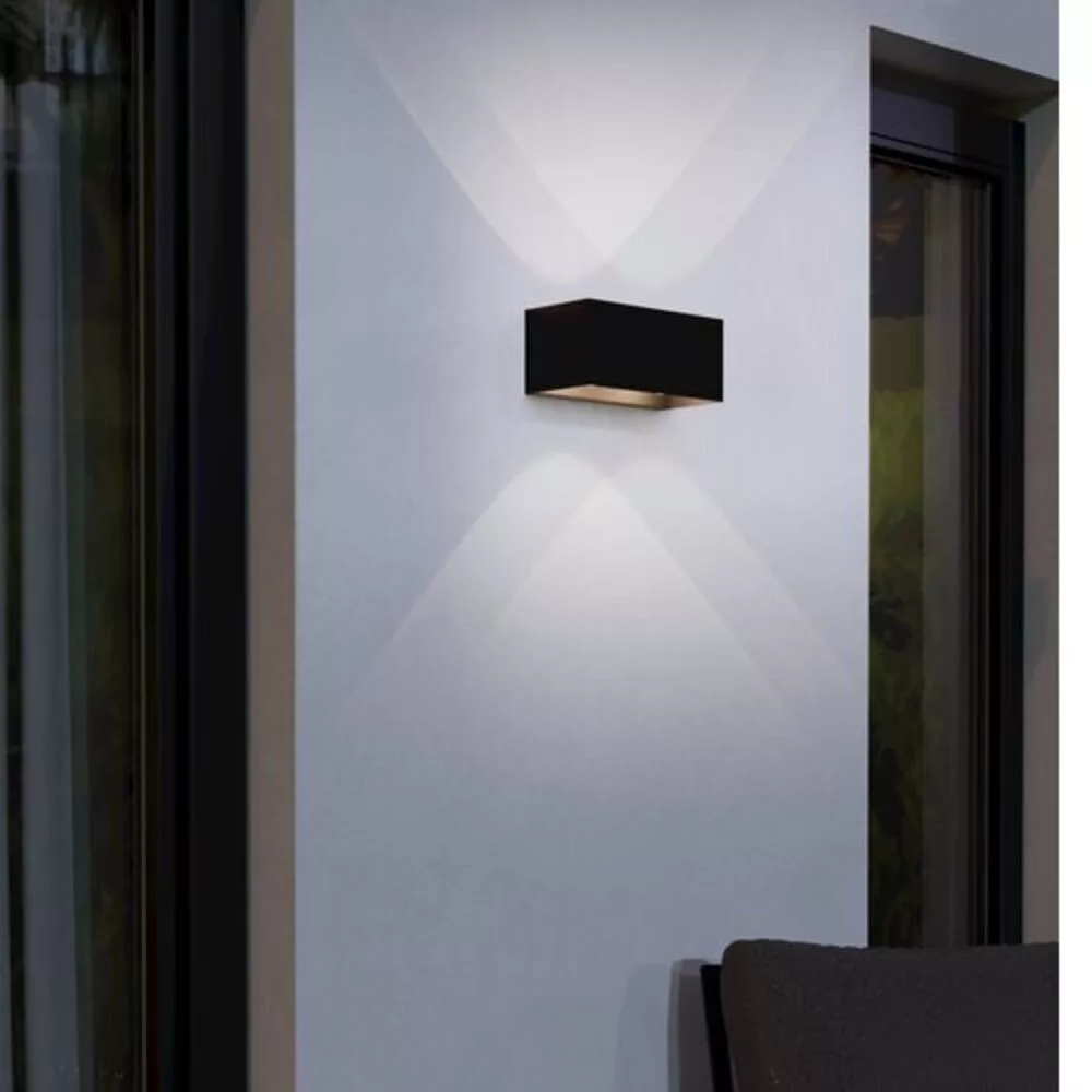 A LESMO kültéri LED fali lámpa modern és minimalista dizájnnal rendelkezik, amely szinte bármilyen kültéri térbe illeszkedik. A lámpa fekete színű, négyzet alakú alumínium öntvény házzal készült, és beépített LED-ek biztosítják a kellemes, meleg fehér fényt. Az up-and-down kialakításnak köszönhetően a lámpa négy közvetett fénycsóvát vetít a falra, így stílusos világítást teremt a külső terekben. Az IP44-es védelemmel ellátott lámpa ellenáll a fröccsenő víznek, így ideálisan alkalmas kültéri használatra. A termékhez tartozik a fényforrás, amely LED típusú, és a maximális teljesítménye 12W. Kiegészíti a kültéri világítást, miközben eleganciát és funkciót biztosít.