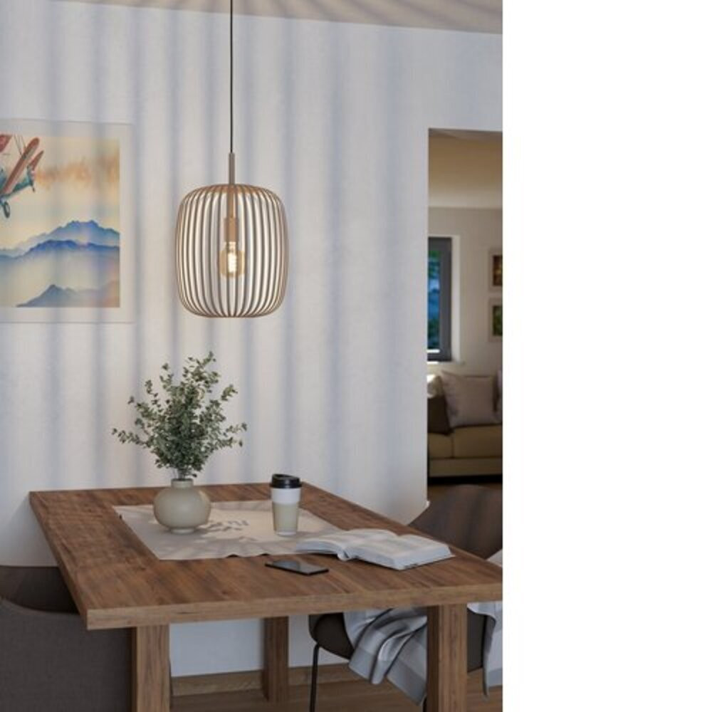 Az EGLO Romazzina típusú beltéri függeszték modern és stílusos megjelenésével ideális választás lehet bármely otthonban. A lámpa burkolata acélból készült, homok színű felülettel, amely eleganciát sugall. A lámpa E27 foglalattal rendelkezik, és maximálisan 1x40W teljesítményű fényforrást képes befogadni, de 12W LED fényforrással is használható. Fontos megjegyezni, hogy a fényforrás nem tartozék a termékhez.