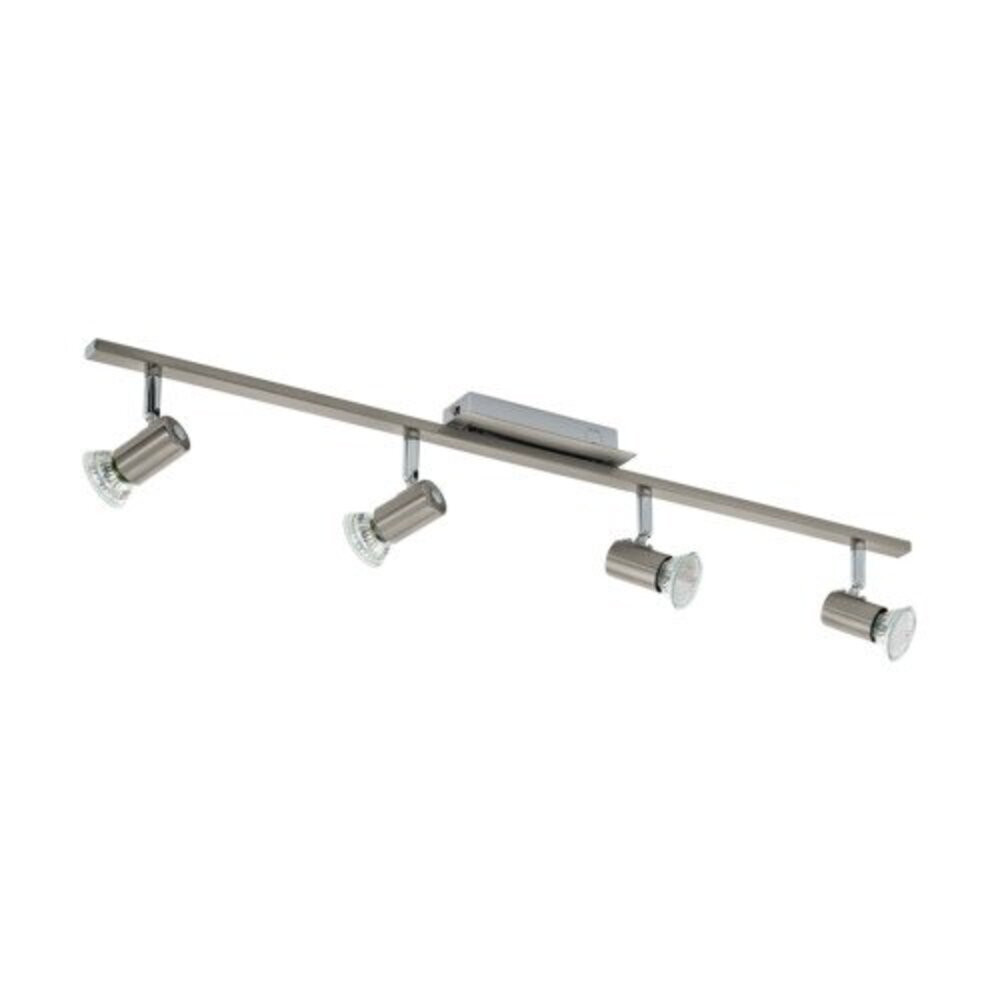 Ez a négy lángos reflektor a ROTELLO sorozatból szatén nikkelből és krómozott acélból készült, és négy GU10-LED-lámpával van felszerelve meleg fehér fényért.