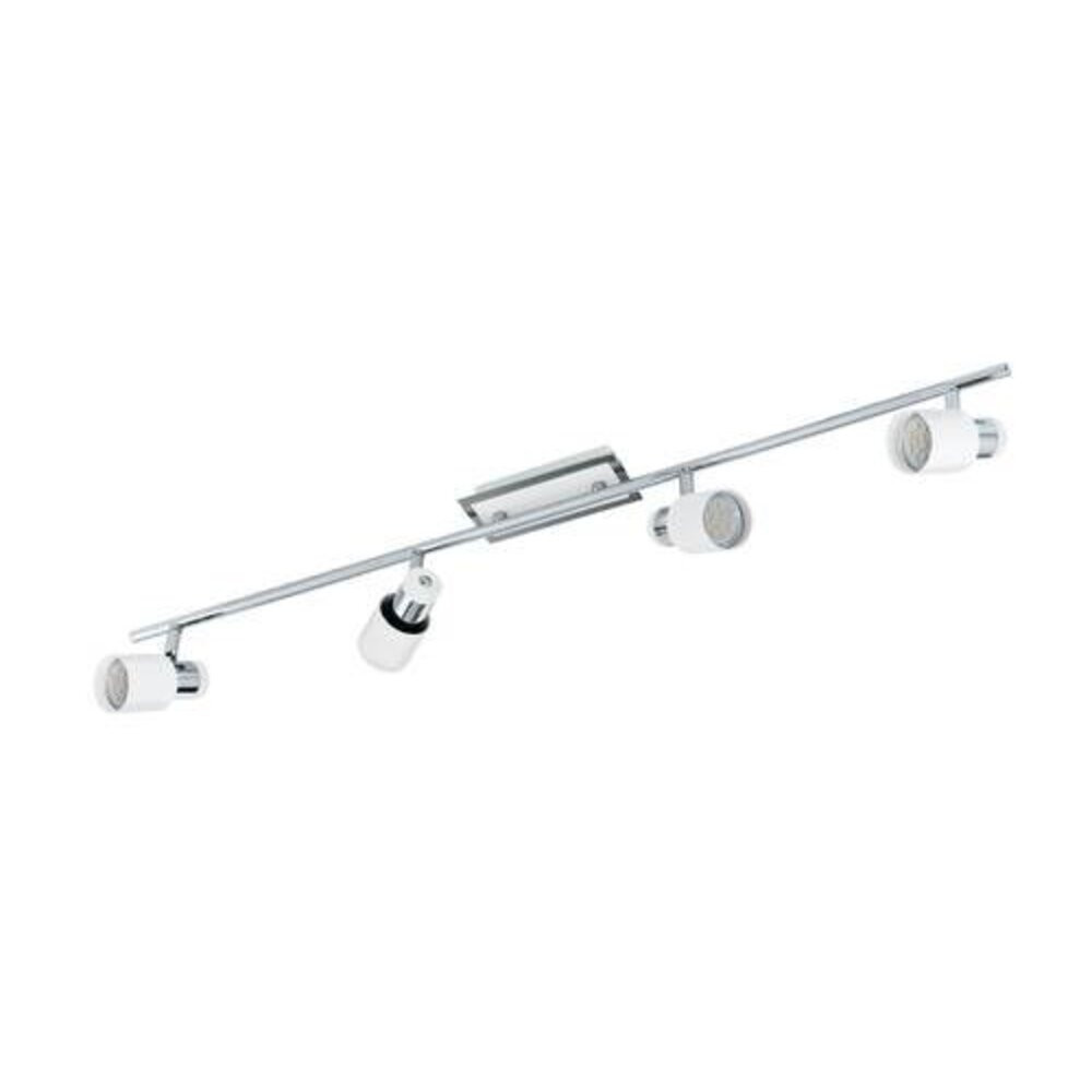 A DAVIDA LED mennyezeti lámpa lineáris fémtesttel rendelkezik, fehér és króm kivitelben, négy állítható, kerek reflektorral. A mennyezeti reflektor modern dizájnnal és forgatható fejekkel rendelkezik, amelyek lehetővé teszik a fény beállítását az egyes helyiségekre, legyen az a konyha, a nappali, a hálószoba vagy az előszoba. A termék tartalmazza a képen látható GU10-LED izzókat, amelyek kellemes, meleg fehér fényt bocsátanak ki.