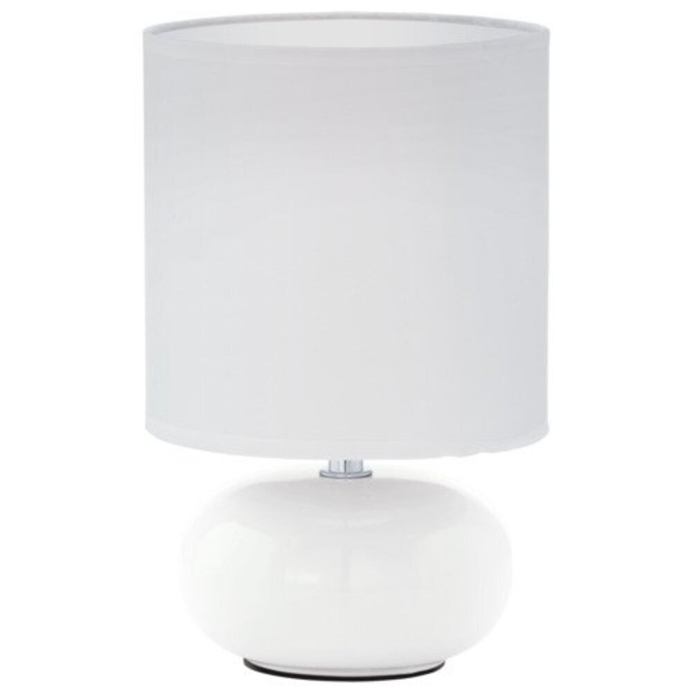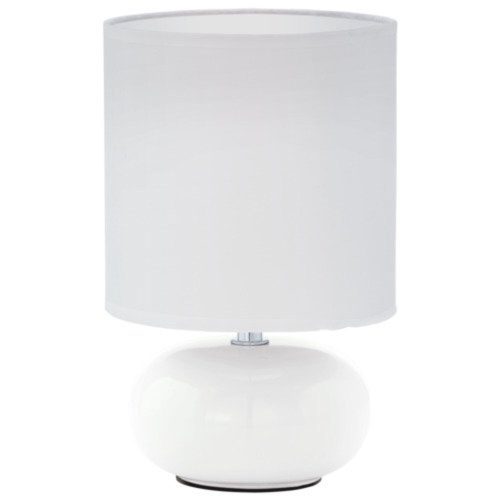 A TRONDIO asztali lámpa elegáns kerek fehér kerámia talppal és fehér textil árnyékkal rendelkezik, amely jól illeszkedik a modern belső terekhez. Az in-line kapcsoló segítségével könnyedén be- és kikapcsolható, így kellemes világítást biztosít bármely helyiségben, legyen az éjjeli szekrényen, egy előszoba komódján, vagy a nappaliban illetve az étkezőben. A lámpához nem tartozik fényforrás, E14 foglalattal rendelkezik, és maximum 40W teljesítményű izzót igényel. A TRONDIO termékcsalád letisztult és stílusos választás, amely a kerámia és a textil kombinációjával bármely enteriőt feldobhat.