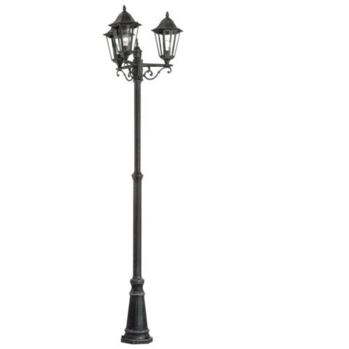 A NAVEDO kültéri állólámpa stílusos lámpás dizájnjával tökéletes választás a kerti vagy udvari világításhoz. A fekete és ezüst-patina színű öntött alumínium váza három fejet tartalmaz, melyek áttetsző üveg panelekből készültek. Az IP44 védettségnek köszönhetően a lámpa ellenáll a fröccsenő víznek, így ideális kültéri használatra. A klasszikus megjelenésének köszönhetően jól illeszkedik akár hagyományos városi villák, akár art nouveau stílusú épületek környezetébe. A lámpa mérete 220 cm, és E27 foglalattal rendelkezik, amely E27-es fényforrásokat igényel. Fontos megjegyezni, hogy a képen látható fényforrások nem tartozékai a terméknek.