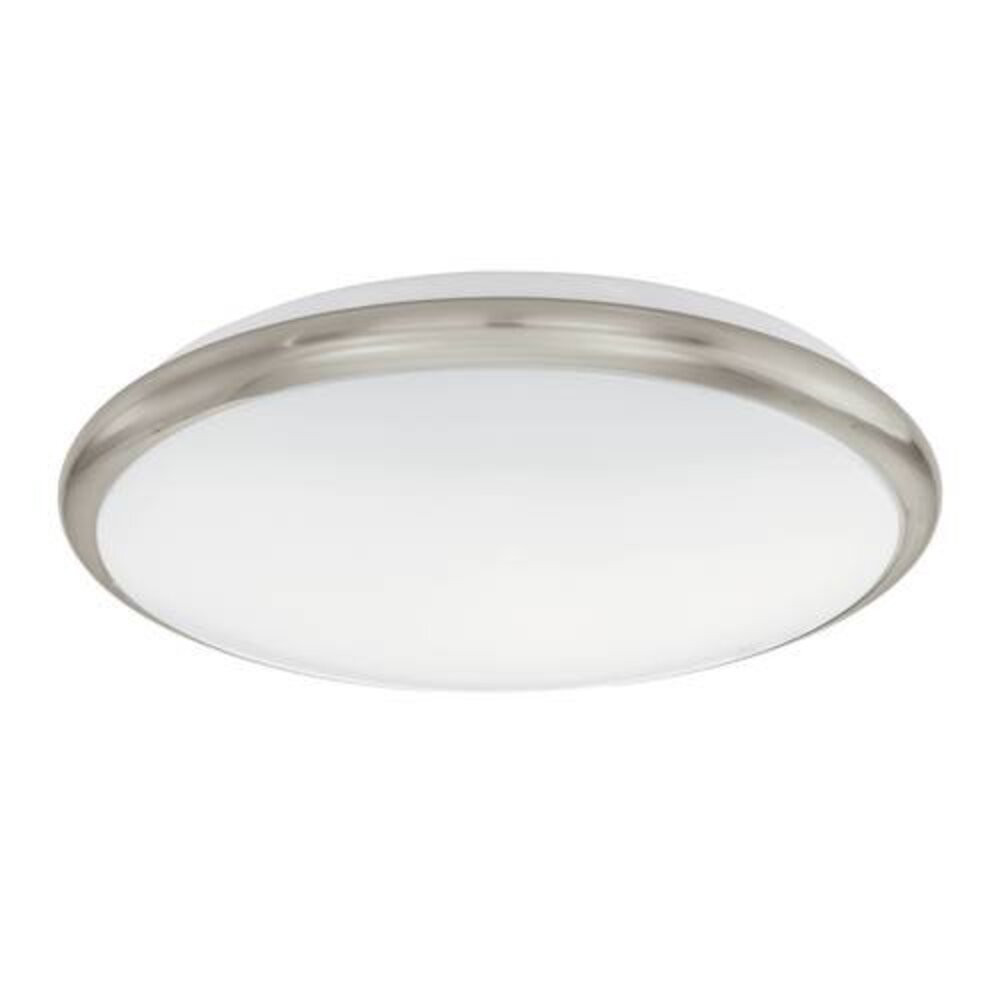 Ez a MANILVA sorozatú falra vagy mennyezetre szerelhető lámpatest szatén nikkel acélból és fehér műanyagból készült. Védelmi szigeteléssel van ellátva, és cserélhető LED-lámpával, amely meleg fehér fényt ad.